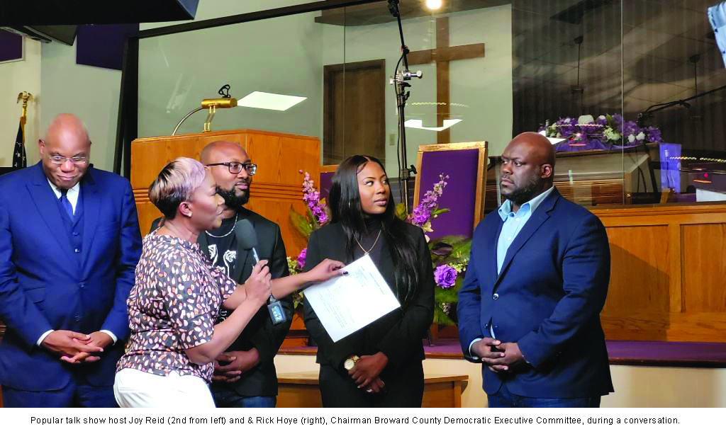 Hoye said the absence of the other candidates speaks to the failure to recognize that Black Floridians are being brutalized by Governor DeSantis. He adds that, the Black attacks of the Trump acolyte have been the primary focus of the governor’s agenda.  That evening Hoye appeared on MSNBC’s THE REIDOUT. Joy Reid, the popular talk show host asked him why he was running to lead the battered FDP.  He said, “One reason is because Ron DeSantis is a repeat offender of Black Floridians.  The other reason is because Floridians don’t deserve a stunt man for governor.”