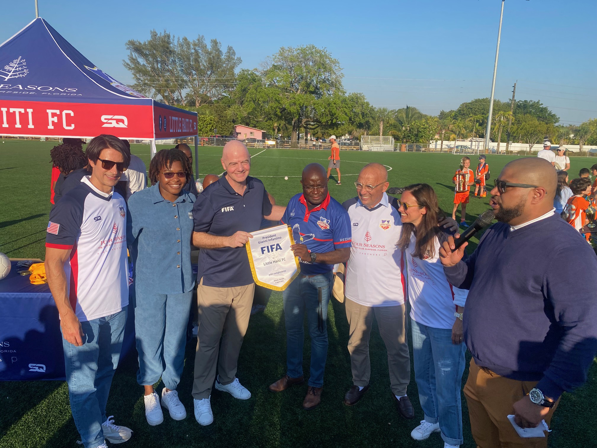 “Yes, this is my first time attending a Haitian soccer program. It’s beautiful. It’s fantastic to see all these children, boys, and girls playing soccer. That is what football is about. We congratulate the head of the organization for putting on this event. We support them, Four Seasons supports them as well,” said FIFA President in response to a question about his thoughts on the event from a reporter from Le Floridien.