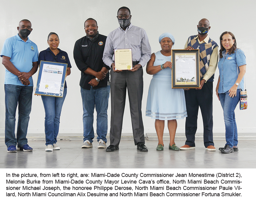 “It’s humbling to stand before you today, to recognize greatness and honor a living legend,” said Miami-Dade County Commissioner Jean Monestime, District 2, before presenting the proclamation of the County Board of Commissioners on behalf his colleagues at the commission. “Every Haitian American politician, every Caribbean-American politician and most politicians in our community would like to emulate Mayor Phillip Derose. Not because he is a tall man, but because of his tenacity, of his desire to serve the community and of his desire to teach others to follow the great example and legend that he has become over the years. So many of us are still learning from him and seeking his advice.”