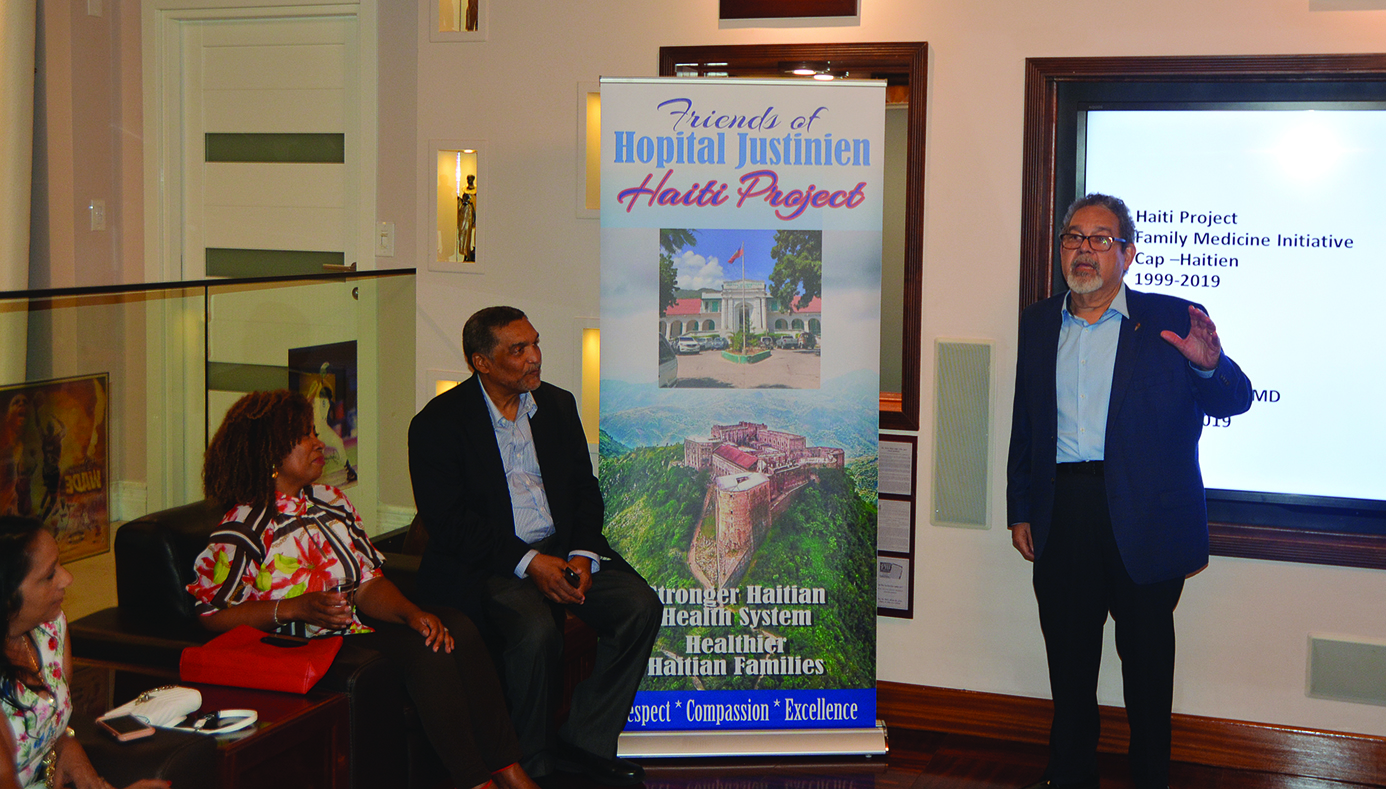 Dr. Michel Dodard, MD, welcomed the guests with an opening remark that set a wonderful and positive tone for the event. The organization’s board secretary and Director of Haiti Project/Family Medicine Program, expressed gratitude by thanking the gracious hosts who opened their North Miami residence to support the private fundraiser. Pleased to see so many friends show up at the event, he highlighted the importance of the gathering for this charitable cause before introducing his colleague, Dr. André Vulcain, MD who lead a 35 minute presentation, which provided the guests a great learning opportunity about the Haiti Project in Hopital Justinien.