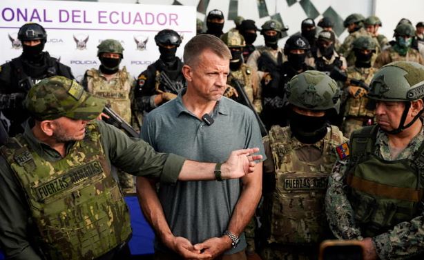 Crédit: Prince Erik, fondateur de Blackwater, assiste à une présentation de la police et de l’armée à Guayaquil, en Équateur, le 5 avril 2025. Photo : Santiago Arcos/Reuters.