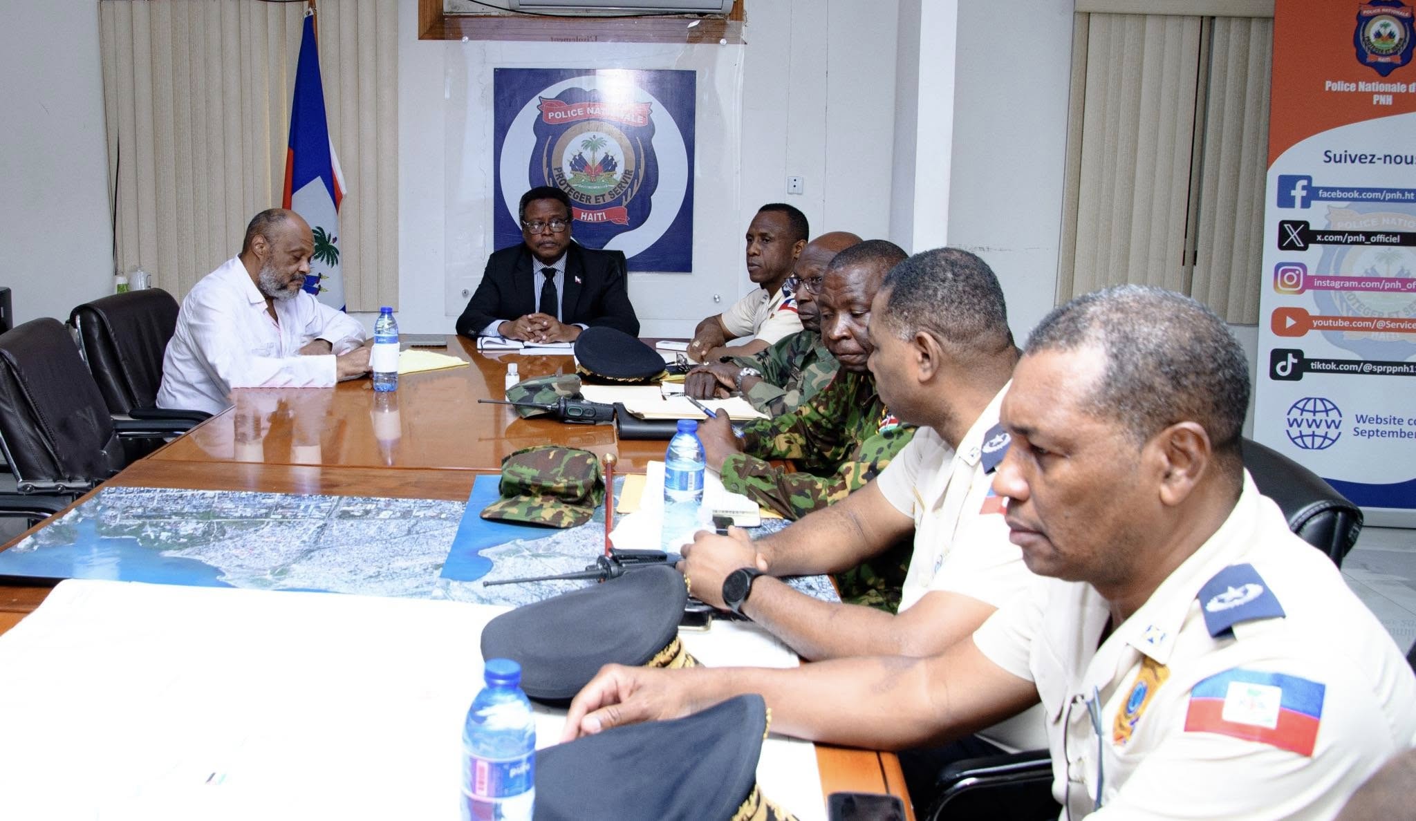 (Le Floridien) – Le président du Conseil Présidentiel de Transition (CPT), Fritz Alphonse Jean, a tenu une réunion stratégique de haut niveau avec les autorités policières haïtiennes, jeudi 20 mars 2025, à la Direction Générale de la Police Nationale d’Haïti (PNH). Cette rencontre, à laquelle ont participé le directeur général de la PNH, Normil Rameau, le commandant en chef de la Mission Multinationale de Soutien à la Sécurité (MMSS), Godfrey Otunge, le représentant des Forces Armées d’Haïti (FAD’H), Derby Guerrier, ainsi que plusieurs hauts gradés des forces de sécurité, avait pour objectif central de définir de nouvelles approches pour contrer l’insécurisation croissante sur l’ensemble du territoire national.