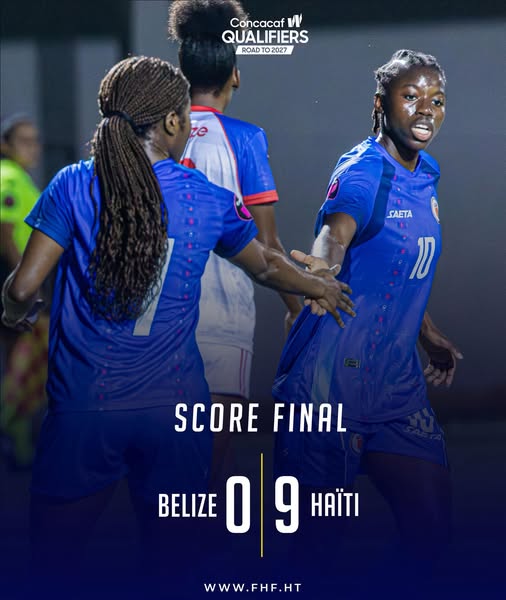 Haïti’s women’s national team opened their qualification campaign for the 2027 FIFA Women’s World Cup with a dominant 9–0 victory over Belize. The Grenadières controlled the match from start to finish, displaying their attacking firepower and defensive discipline. With this win, Haïti takes the lead in their qualifying group and strengthens their chances of earning a spot at the World Cup in Brazil. The team now looks ahead to tougher opponents as they continue their quest for a second consecutive appearance on football’s biggest stage.