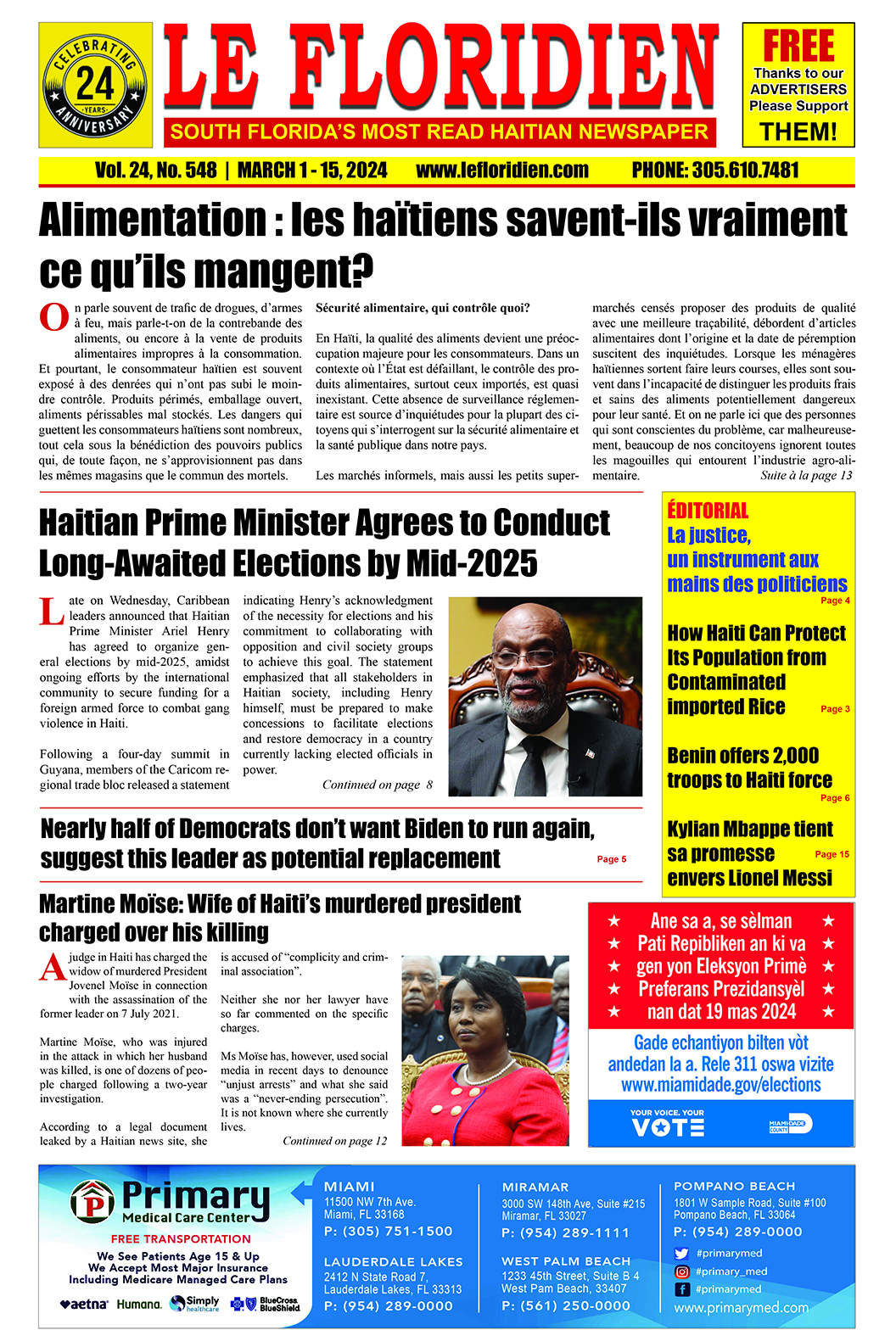 e-Edition Le Floridien e-Edition Vol 24 No. 548 March 1 – 15, 2024 By admin - February 29, 2024 FacebookTwitterPinterestWhatsApp Views: 513 (Visited 5 times, 1 visits today)