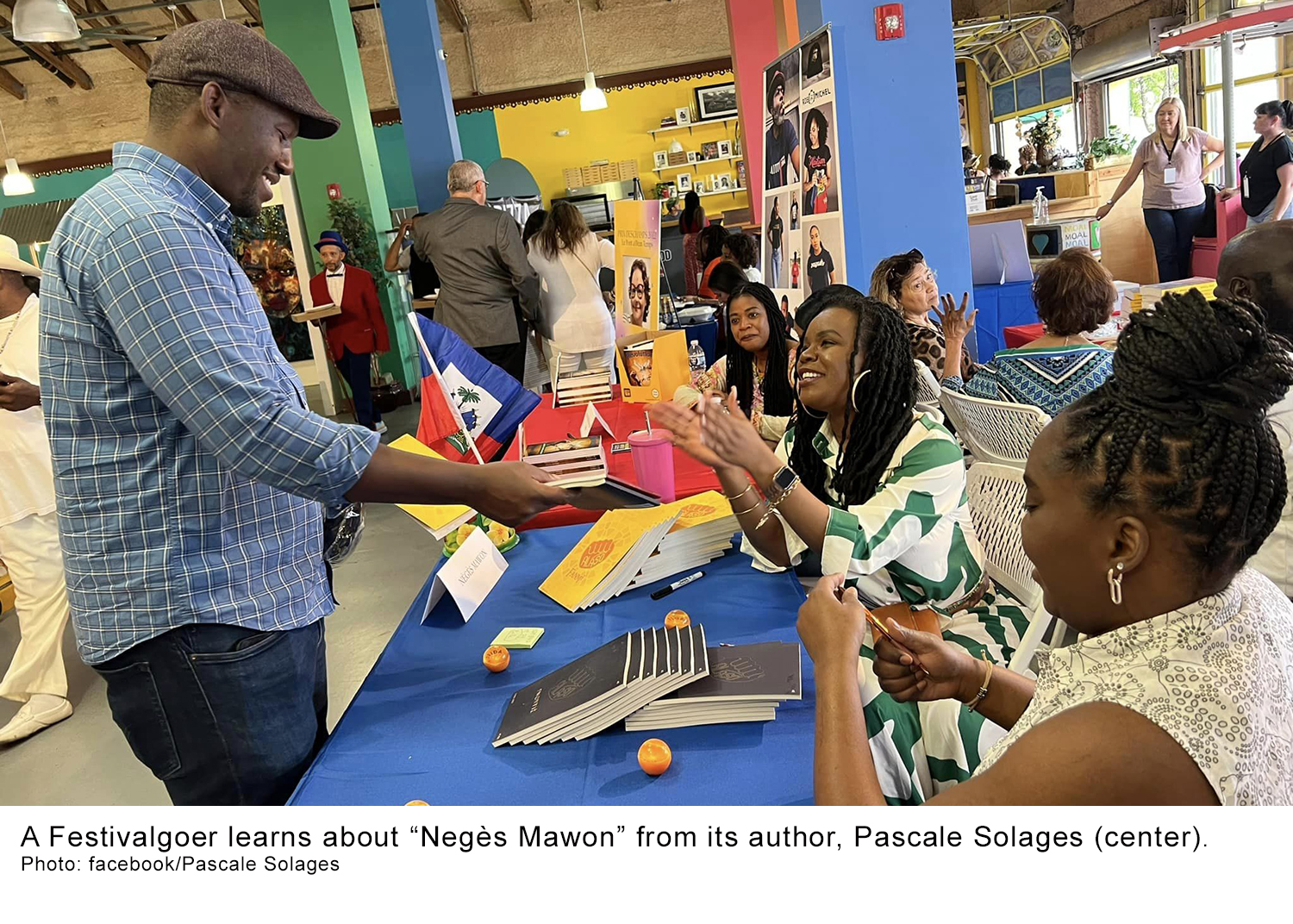 Playwright, singer, actor, and dancer Frantz ‘Kiki’ Wainright said he sold a good number of copies of his three books: Vilokan: Teyat Total an 3 Tablo Bonifas AK Malefis, Kont Kreyot, and Haitian Folktales. Speaking about the festival, journalist-author Jonel Juste said, “I am happy to participate as an author at this event. This is an activity that allows the authors to meet their readers. It also helps in term of networking. Most importantly, it sends a strong signal to those who seem to believe that Little Haiti doesn’t exist anymore at a time where the gentrification process is moving forward. Carrefour de Nuit, Solèy Solèy, Astres et Désastres, and Zanmi Angle (French Edition) were some of the books displayed at Juste’s table. Pascale Solages, co-founder and general coordinator of feminist organization Nègès Mawon, was there to sign her books ‘Neges Mawon’ and “Alaso’ for the readers.