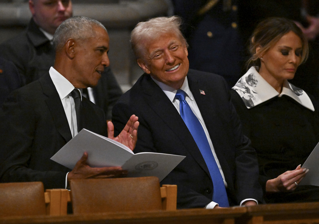 Washington (Le Floridien) — Among the most notable moments at the funeral of former President Jimmy Carter, one stood out above all: the unexpected interaction between former President Barack Obama and President-elect Donald Trump. The scene, which saw the two political figures sharing smiles and laughter, has captured widespread public interest and sparked significant discussion.