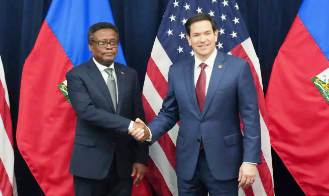 Kingston, Jamaica — March 26, 2025 (Le Floridien) –U .S. Secretary of State Marco Rubio met on Wednesday with Fritz Alphonse Jean, President of Haiti’s Transitional Presidential Council (TPC), to discuss the deepening security crisis engulfing the country, particularly the capital, Port-au-Prince.