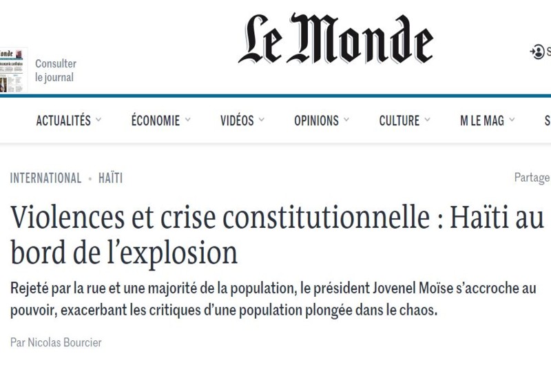 (Le Floridien) – Dans sa dernière édition, le célèbre journal Le Monde est revenu sur la situation catastrophique dans notre pays. Le quotidien a ainsi estimé qu’Haïti était plus que jamais au bord du précipice. La raison? L’approche de la date fatidique du 7 février, une date à laquelle le mandat de Jovenel Moïse devrait prendre fin selon une grande majorité de la population, de l’opposition politique, et même des constitutionnalistes. Or, le Président Jovenel ne montre aucun signe qui indiquerait qu’il envisage de quitter le pouvoir dans les prochains jours. Bien au contraire! Ses récents décrets ainsi que ses sorties médiatiques sont sans équivoque. Pour lui, il ne partira pas avant le 7 février 2022, voire au-delà si jamais il est réélu lors de la prochaine élection présidentielle.