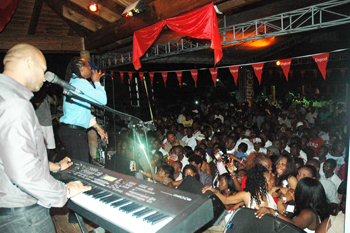 La soirée du samedi 21 janvier (jour férié à l’occasion de la fête Notre Dame d’Altagracia en République Dominicaine), a attiré un public plus raionnable. à tour de rôle, les guitaristes Didi Santana et Ti Régi ainsi que le keyboardiste Ti Pouche faisaient des solos, avec beaucoup de talent. Le bassite Herman “Mamane” Absolue a dirigé le groupe avec brio, non sans quelques touches de fantaisie.